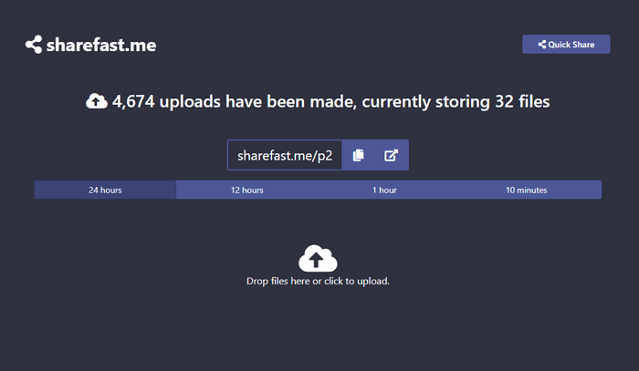 Максимальний розмір файлу складає 100 Мб, а їх кількість не обмежена. У цього сервісу є ще одна суттєва перевага перед конкурентами. На відміну від інших файлообмінників, Sharefast.me створює посилання, що складаються всього з двох символів. Такий URL набагато простіше запам'ятати, ніж адресу з десятка знаків. Більш того, ви можете самі придумати адресу, але він повинен складатися мінімум з чотирьох символів.