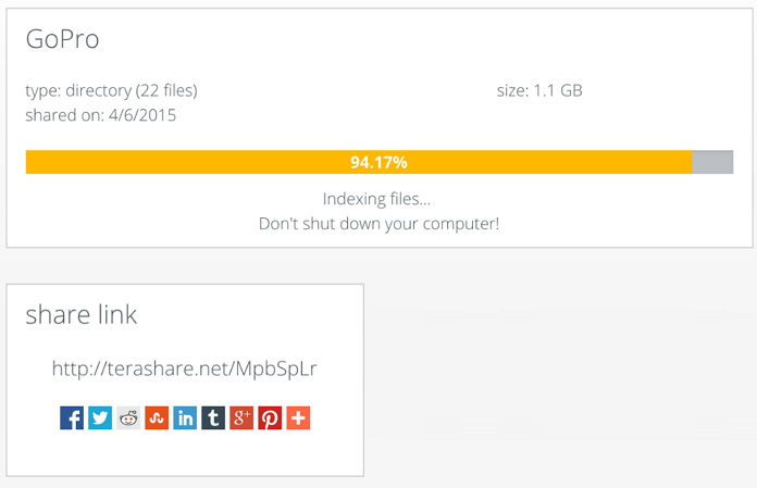 Так як програма працює по протоколу p2p, завантаження і скачування починається моментально. По суті, ваші друзі будуть одночасно завантажувати шматочки файлу з кожного комп'ютера пірингової мережі (їх власники не зможуть його подивитися т. до. він буде зашифровано), за рахунок чого істотно зростає швидкість завантаження. Звичайно ж, ваш комп'ютер повинен бути включений до закінчення цієї закачування. Файли, розмір яких не перевищує 10 Гб, завантажуються безпосередньо на сервера TeraShare, тому користувачі можуть завантажувати їх навіть у тому випадку, якщо ваш комп'ютер уже не в мережі.