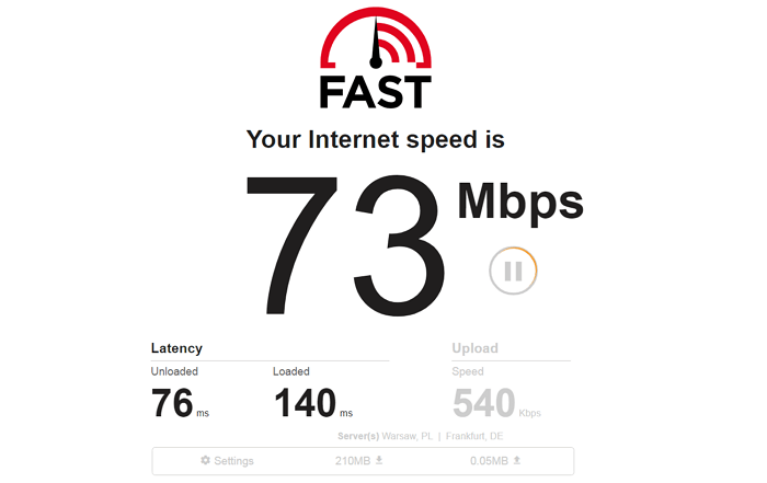 Fast.com вимірює швидкість завантаження між вашим пристроєм та онлайн-кінотеатром Netflix.