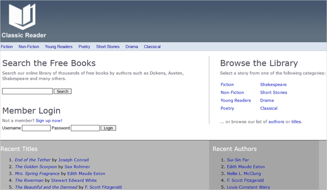 Classic Reader пропонує не так багато варіантів, як інші сайти (на момент написання – менше 4000). Тим не менш, ви все ще можете насолоджуватися класикою Чарльза Діккенса або Жуля Верна. Якщо у вас є улюблений автор, ви можете переглянути доступні всі його книги, а також прочитати біографію. В цілому сайт може бути не самим видатним з цієї збірки, але безперечно варто вашого часу.
