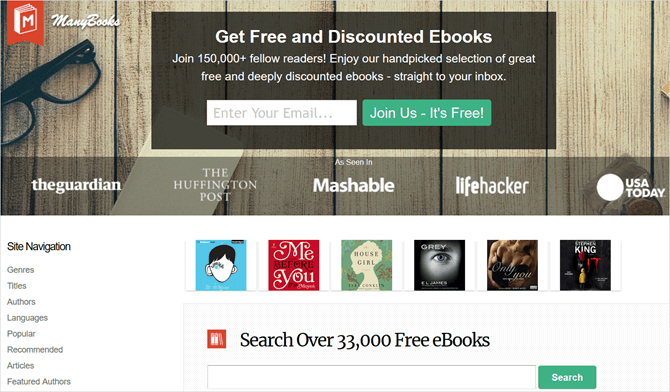 ManyBooks працює за таким же принципом, що і Planet eBook, пропонуючи безкоштовну класичну літературу. На відміну від сайту Planet eBook, який пропонує ретельно відібраний обсяг літератури, ManyBooks публікує безліч книг разом.