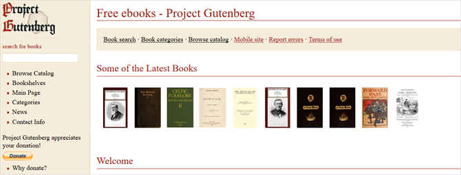 З огляду на більш ніж 54 000 безкоштовних книг на сайті Project Gutenberg, ви обов'язково знайдете щось по душі. Можна шукати конкретний твір, поглядати нещодавно додані або переглянути список найпопулярніших.