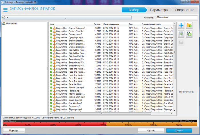 Меломани полюблять Ashampoo Burning Studio Free за можливість витягувати треки з музичних CD з автоматичним розпізнаванням треків. Як форматів збереження підтримуються MP3, WMA і WAV у всіх можливих рівнях якості. Вбудована нормалізація дозволить домогтися однакового рівня гучності на всіх треках, а за допомогою вбудованого плеєра можна буде послухати кожен трек, щоб відібрати потрібні.