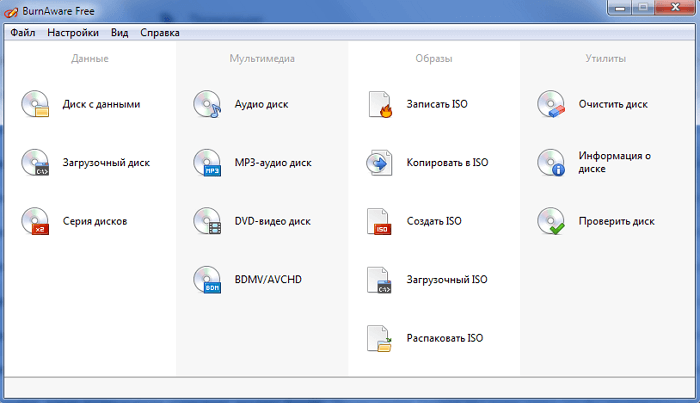 За допомогою BurnAware ви також зможете створювати завантажувальні або мультисесійні диски, створювати і записувати образи ISO, копіювати диски, витягувати звукові доріжки, а також відновлювати дані з подряпаних болванок.