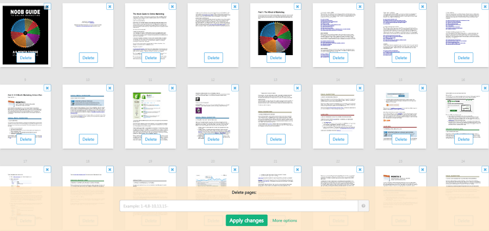 Видаляти сторінки можна й іншим способом. Вкажіть їх номери або діапазони в нижній панелі, а потім натисніть кнопку Apply changes, щоб запустити процес. Це зручно при редагуванні занадто довгих документів.