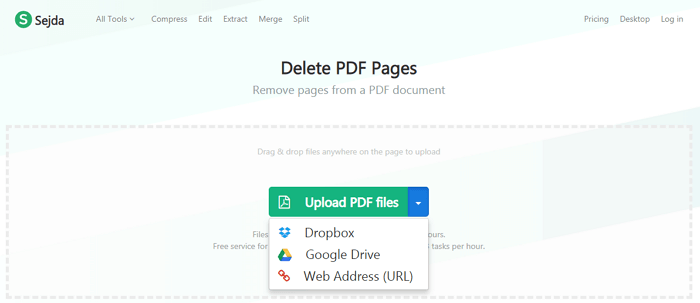 PDF24— ще один безкоштовний онлайн-редактор, що дозволяє без зусиль видалити непотрібні сторінки PDF-документа. Тут немає жодних часових рамок і надто суворих обмежень на розмір завантажуваних файлів. На відміну від PDFCandy, цей сервіс надає можливість переглядати сторінки в форматі мініатюр, що істотно полегшує процес редагування. Так само, як і в PDF Resizer доступна робота з декількома файлами одночасно. Більш того, імпортувати документи можна безпосередньо з Диска Google або Dropbox.