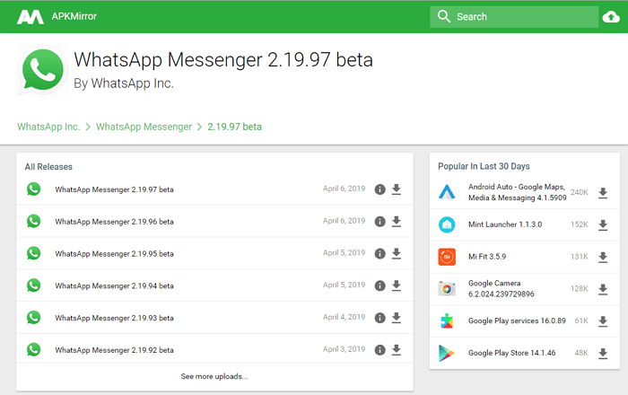 Одна з особливостей сайту, яку варто відзначити, — це можливість скачувати старі версії АПК. Це може стати в нагоді, коли остання версія улюбленого програми стала працювати не так, як раніше або з'явилося багато реклами. При бажанні можна навіть завантажити WhatsApp, який був у 2014 році. Буде він правильно працювати — вже інше питання.