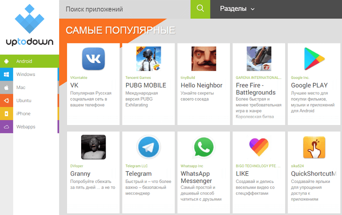 APKMirror — найпопулярніший сайт серед користувачів Android. На ньому можна знайти більшість додатків в самих різних категоріях. Всі APK підписані сертифікатами розробників, що робить скачування абсолютно безпечним. Дійсність сертифікатів перевіряється модераторами вручну. Тому ви не знайдете тут ніяких модифікованих або зламаних програм. APKMirror регулярно оновлюється і надає найсвіжіші версії файлів. Для зручності пошуку є сортування по популярності — можна з легкістю знайти найпопулярніші файли за місяць, 7 днів або 24 години.