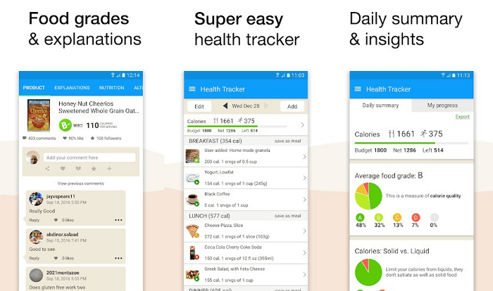 Якщо вас цікавить саме функція підрахунку калорій, Fooducate залишається на висоті. Завдяки старанням учасників спільноти картотека продуктів велика та регулярно поповнюється. У розділі Health Tracker відображається кількість калорій, які надходять в організм разом з їжею і витрачаються на різні види діяльності.
