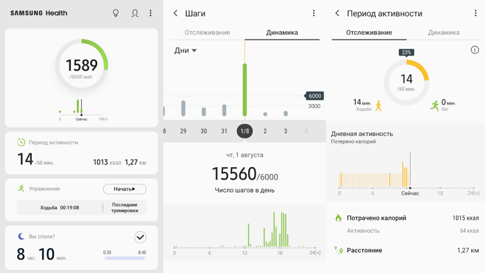Samsung Health — додаток, створене для смартфонів Samsung і вперше з'явилося у флагманах Galaxy S6 і S6 edge. У цих пристроях воно встановлено за промовчанням. Програма тісно пов'язана з акселерометром і може в кінці дня видавати інформацію про кількість зроблених кроків, що стимулює більше прогулюватися.