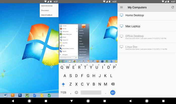 PC Remoteвідрізняється великою кількістю корисних функцій. Крім звичайної клавіатури і миші, ви можете працювати з Powerpoint і Excel, управляти камерою і музикою. Додаток використовує віддалений робочий стіл Windows, щоб передавати вміст екрана системи на дисплей вашого смартфона. В PC Remote інтегровано більше 25 консольних ігор, в які можна грати за допомогою тачпада. Підтримує різні типи ігрових пультів.