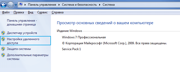 Незважаючи на те, що встановлювати клієнт-сервер на комп'ютер не потрібно, вам потрібно буде зробити деякі нескладні маніпуляції. На Windows 7 і 8 зайдіть в «Панель управління», виберіть категорію «Система і безпека», потім – «Система». Тут в розташованій панелі зліва натисніть на рядок «Налаштування віддаленого доступу».