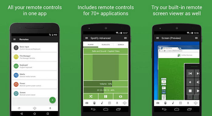 Unified Remoteзв'язується з комп'ютером через Bluetooth або WiFi. Включає в себе підтримаю понад 75 програм. Підтримує не тільки Windows, але і Linux і Mac. По суті, Unified Remote перетворює ваш телефон в універсальний пульт ДУ. Підтримуються додаткові клавіатури — такі, як SwiftKey і Серветки. Можете завантажити безкоштовну версію з обмеженою функціональністю або отримати доступ до всіх можливостей утиліти після разової оплати.