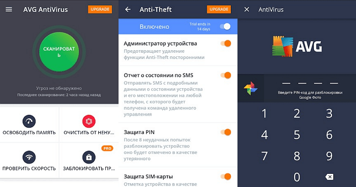 AVG Antivirus Security — ще одну антивірусну програму для Android світу з ПК, про яке багато хто знає. На сьогоднішній день воно має понад 100 мільйонів завантажень і гідний рейтинг 4,4 на Play Market. AVG трохи простіше за функціями в порівнянні з іншими відомими брендами і включає в себе захист у реальному часі, сканування пристроїв і постійне оновлення антивірусних баз.