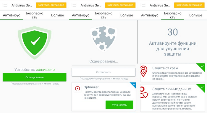 Avira Antivirus — володіє такими основними функціями, як сканування, захист в реальному часі і можливість сканування зовнішнього накопичувача. Існують опції захисту від крадіжок, параметри конфіденційності, чорні списки і режим адміністратора. Це більш «важкий» антивірусну програму, але в роботі «тяжкість» майже не відчувається. Варто спробувати його хоча б заради Stagefright Adviser.