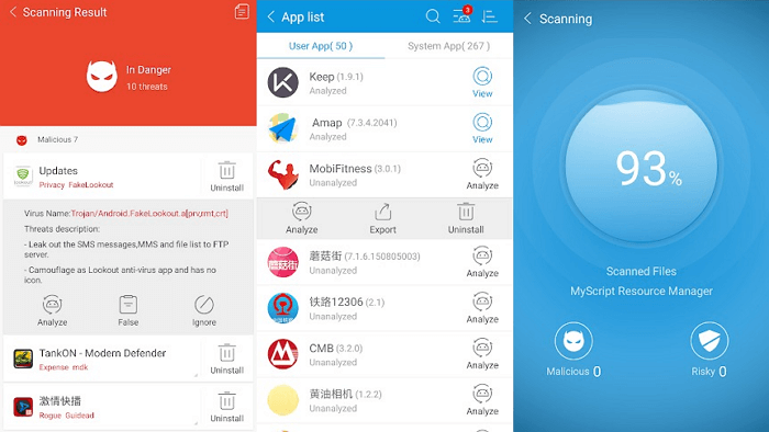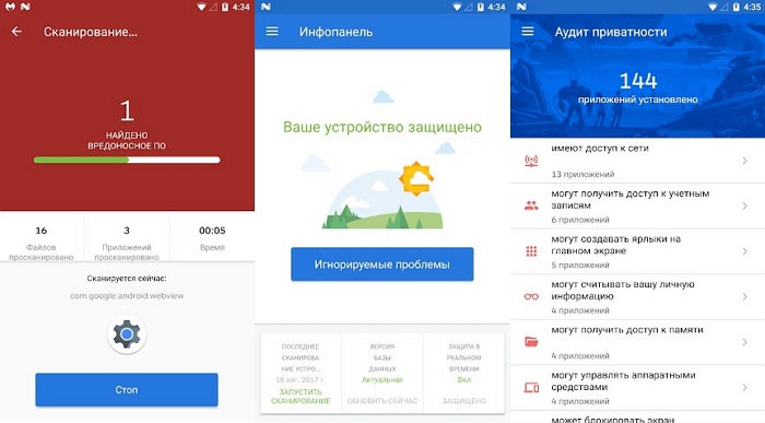 360 Securityна сьогоднішній день — одне з найбільш популярних програм в нашому списку. Доказом тому служать більш ніж 100 мільйонів завантажень і 10 мільйонів оцінок з загальним рейтингом у 4,6. Дуже гарна оцінка! 360 Security володіє безліччю функцій, включаючи можливість сканування файлів пристрою на наявність шкідливого софту, сканування додатків і ігор, включення захисту в режимі реального часу і навіть захист від крадіжок.