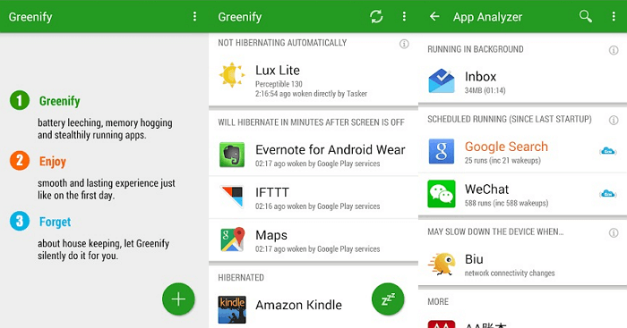Greenify економить час автономної роботи, визначаючи програми з найбільшим енергоспоживанням і споживанням пам'яті. І з вашого дозволу переводить цих злочинців у неактивний стан, зване режимом сну. Для деяких функцій потрібні root-права. Після рутинга пристрою ви можете розслабитися, тому що Greenify подбає про решту.