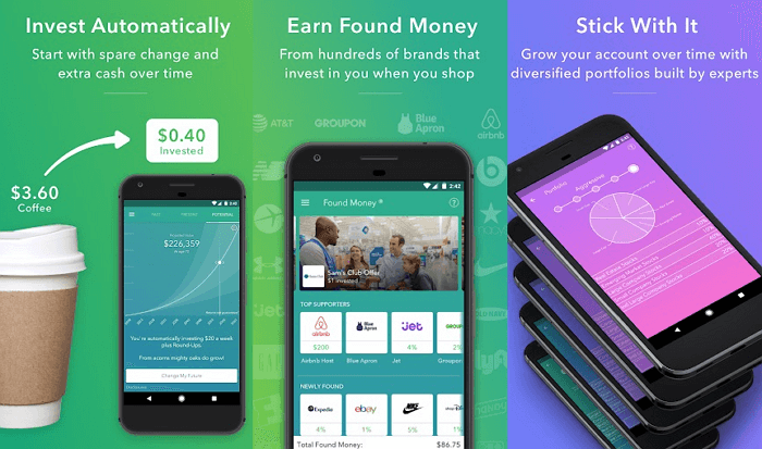 Якщо ви не хочете думати куди вкладати і віддаєте перевагу інвестувати потроху і регулярно — кращим варіантом для вас стане Acorns. Ви прив'язуєте в ньому банківську картку, а додаток буде автоматично округляти суму ваших покупок в більшу сторону до наступного долара, а різницю — вкладати в один з п'яти портфелів біржових інвестиційних фондів під управлінням професіоналів.