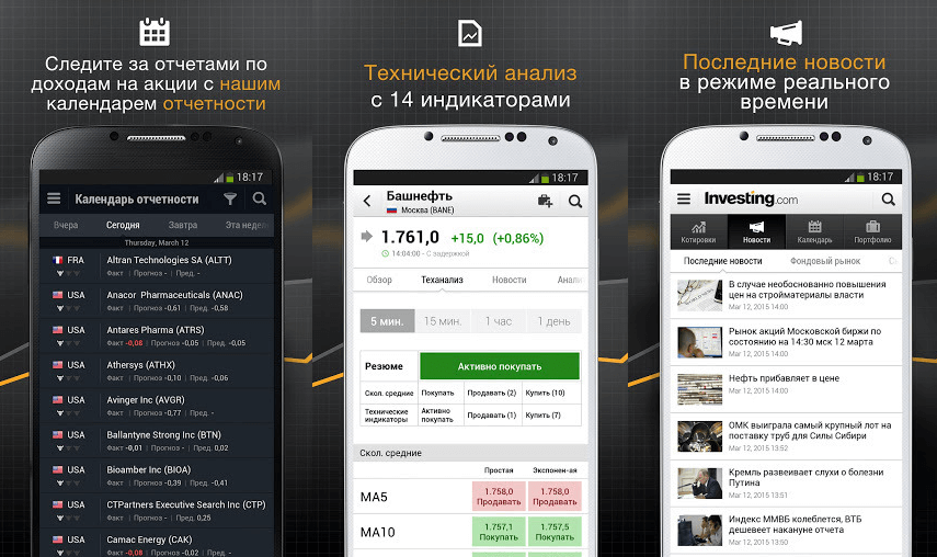 ВInvesting.comви можете бачити котирування близько 100 тисяч фінансових інструментів на 70 біржах зі всього світу. До цих інструментів відносяться акції, облігації, товари, ф'ючерси та опціони. Ви можете створити свій інвестиційний портфель і синхронізувати його з сервісом. Настроюються оповіщення гарантують, що ви ніколи не пропустите важливе подія під час торгів.