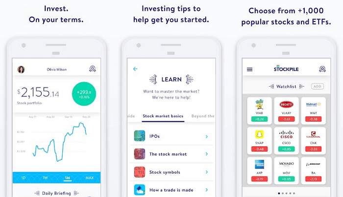 Stockpile пропонує унікальний підхід до торгівлі цінними паперами. З його допомогою можна придбати частку практично будь-якої компанії. Крім того, можна поповнити свій акаунт за допомогою подарункової картки, а торгувати можна починаючи вже з п'ятидоларової балансу. Помісячна оплата відсутня, а угоди укладаються від 99 центів. Це особливо цікаво для батьків чи бабусь і дідусів, які хочуть зацікавити своїх дітей чи онуків, щоб вони займалися в подальшому фондовими ринками.