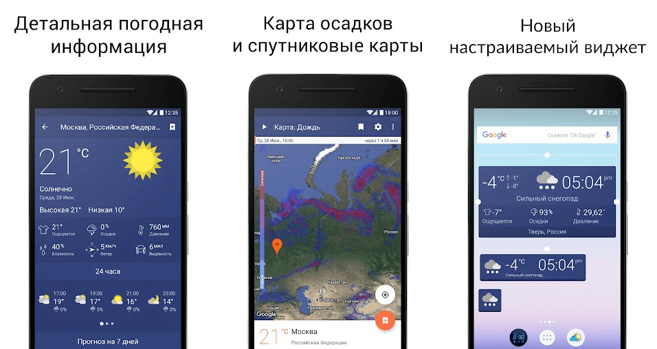 Погодні додатки і віджети для смартфонів з кожним роком стають все краще і краще: з'являється більш детальна інформація, інтерфейс стає більш зручним. Такі програми дуже популярні, адже всі хочуть знати, чи варто брати з собою парасольку чи ні, тому зростає конкуренція і якість програм. Останнім часом вони стали набагато точніше завдяки метеорологам, які використовують передові технології для створення високонадійних прогнозів погоди, аж до району міста. У цій статті ми зібрали кращі з них!