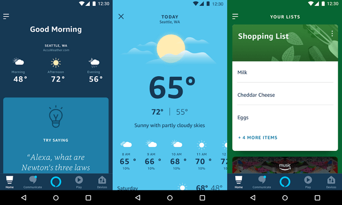 Цей голосовий помічник дасть вам миттєвий доступ до сервісів Alexa з будь-якої точки будинку. Просто скажіть «чарівне слово» віртуальний асистент приготується слухати і виконувати ваші команди. Особливо варто відзначити здібності асистента до інтеграції сервісів Alexa з іншими платформами і пристроями. Природно, Alexa вміє робити і те, що входить в базовий набір будь-якого голосового помічника: відповідати на запитання, видавати інформацію про погоду і результати спортивних матчів та багато іншого. Все це, звичайно ж, тільки на англійській мові. Для Росії, на жаль додаток не адаптовано.