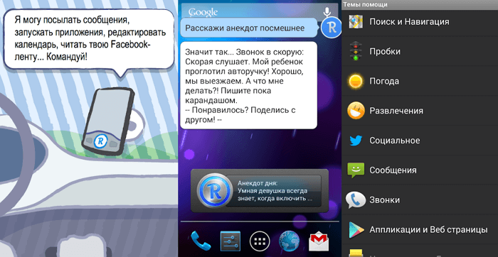 Robin — відмінний голосовий помічник з елементами штучного інтелекту, який призначений для автомобілістів. Він чудово справляється з відповідями на питання, побудовою маршруту, пошуком ресторанів і заправних станцій, попередженнями про пробки на дорогах, видачею результатів спортивних матчів і так далі. Можливості програми повною мірою проявляються під час їзди — Robin допомагає водіям не відволікатися від ситуації на дорозі.