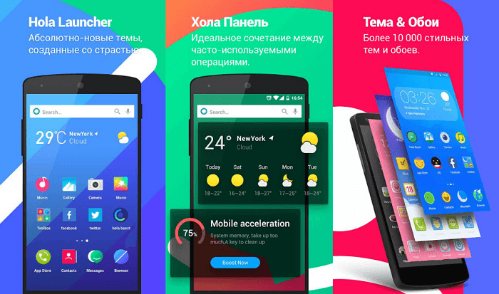 Розробники Hola Launcher починали свій проект з одного-єдиного питання: «У яких функціях в першу чергу потребують люди?» Гарненько подумавши над ним, вони взялися за роботу і створили Hola Launcher — легку і просту альтернативу для бажаючих домогтися найкращого результату з найменшою кількістю витрат.
