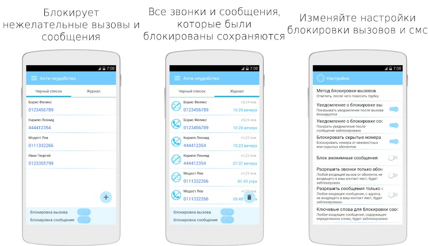 Додаток розроблено під Android вже відносно давно. Воно кілька разів оновлювався, але, на жаль, до теперішнього моменту можливості цього ПО блокування SMS-повідомлень і дзвінків залишаються обмеженими. У загальному і цілому програма виконує свої функції, але робить це не так добре, як хотілося б.