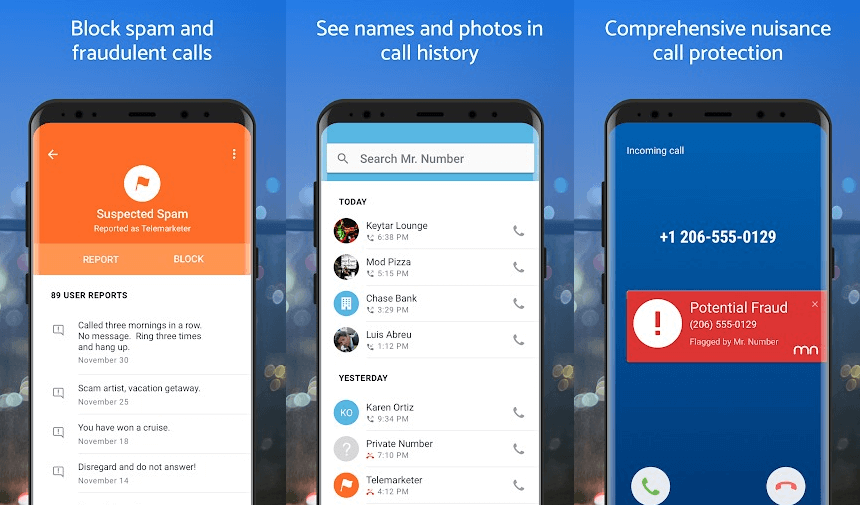 Як і в ряді інших додатків з нашого списку, в Mr. Number є база даних номерів, з яких проводиться розсилка спаму або реалізуються шахрайські схеми. Номери, які беруть участь у фішингу та інших протиправних діях, автоматично блокуються, а користувач повідомляється про спроби здійснення дзвінка.