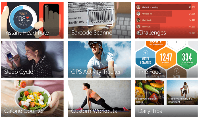 Є вбудований довідник по вправам і навіть сканер штрихкодів, який допоможе відстежувати кількість споживаних калорій. А також є власна соціальна мережа з мільйонами активних користувачів, з якими можна порадитися або просто поспілкуватися. Програма безкоштовна, проте, за розширений функціонал, що включає, наприклад, вправи для дому, доведеться платити 3 долари в рік.