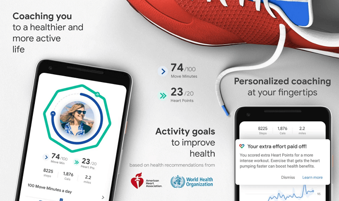 У Move Minutes хвилини вважаються тільки тоді, коли ви проходите більше 30 кроків у хвилину. Тобто, звичайні переміщення по будинку враховуватися не будуть. Аналогічно Heart Points заробляються тоді, коли ви йдете швидким кроком або біжите. Все це робить Google Fit — один з найкращих крокоміром для Android. Серед інших можливостей варто згадати ведення журналу і постановку завдань по Move Minutes.