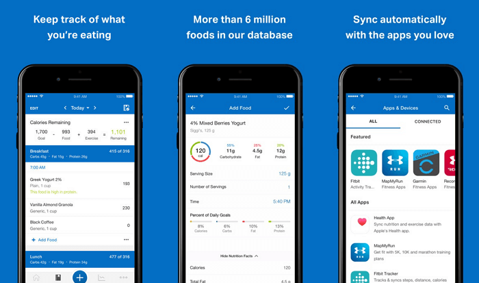 Крім підрахунку пройденої відстані, в MyFitnessPal включена одна з найбільших бібліотек по харчуванню з детальною розбивкою за інгредієнтами. Адже недостатньо просто робити 10000 кроків. Потрібно ще правильно харчуватися, отримуючи необхідну кількість макроелементів. Скористайтеся вбудованим сканером штрих-кодів, щоб дізнатися кількість вітамінів та макроелементів в продуктах, які ви зазвичай купуєте.