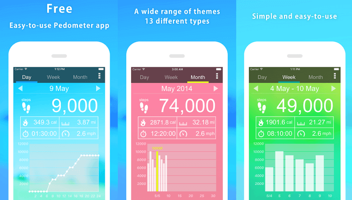 Pedometer дає дуже мале навантаження на батарею смартфона і пропонує на вибір кілька тем для оформлення інтерфейсу. Для більшої економії можна заздалегідь виставити час початку та завершення роботи програми. При необхідності ви можете налаштувати чутливість сенсорів, щоб відкалібрувати підрахунок відстані, коли ви їдете на велосипеді або автомобілі.