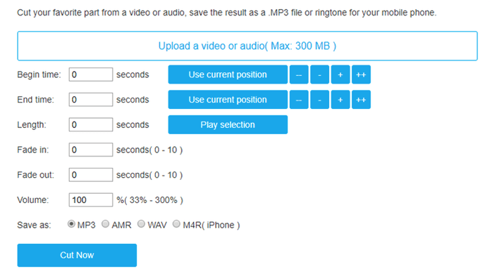 Ще одна відмінність даного сервісу від audioTrimmer в тому, що Toolur MP3 Cutter дозволяє вручну ввести точний час зростання і загасання гучності. Це корисна функція, якщо ви не хочете, щоб рінгтон змушував вас як можна швидше підняти трубку.