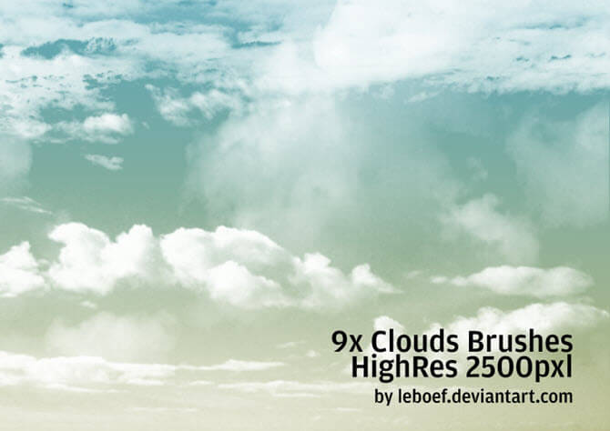 Cloud Brushes — це набір з дев'яти хмарних кистей, розміщених на Deviantart, пропонує приємне поєднання важких пишних примірників і тонких, схожих на туман, хмар.
