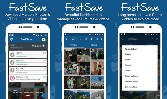 Якщо ви не хочете постійно переходити на сторонній сервіс для зберігання фотографій, тоді вам потрібно встановити додатокFastSaveна свій Android, яке буде автоматично завантажувати зображення, посилання на яку ви скопіюєте в Instagram. Її нікуди не треба вставляти, просто цією дією ви даєте команду на скачування. Вам більше нічого не треба робити!