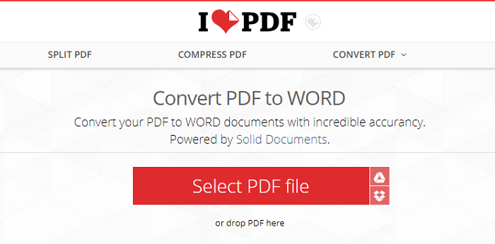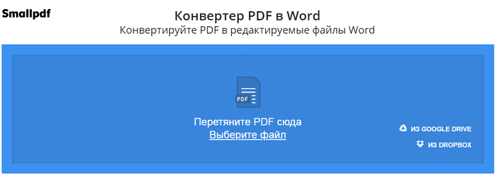 Smallpdf — «швидко, просто і безкоштовно» — основні характеристики цього онлайн-сервісу, який працює з більшістю текстових і графічних форматів. Перетворені документи можна завантажити на свій комп'ютер, а також зберегти в Google Drive або Dropbox.