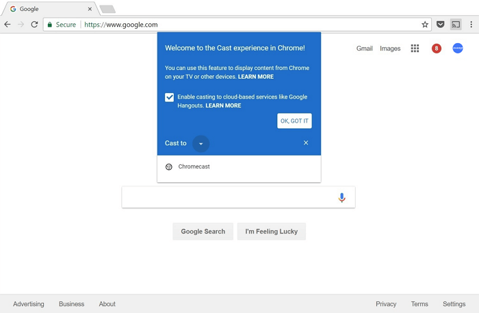 Можна передавати зображення завдяки приставки Chromecast (коштує 4000 рублів). Якщо одне з таких пристроїв підключено до вашого телевізора (або на ТВ встановлений Android TV, має такі ж можливості), ви зможете передати на нього картинку з комп'ютера, використовуючи операційну систему Windows або macOS. Правда, передаються тільки відкриті вкладки в браузері Chrome.