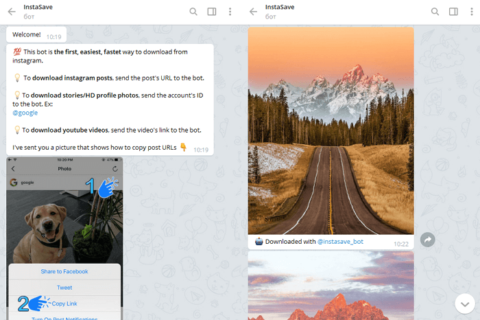Якщо я бачу милу картинку з котиком, то я її скачую, однак Instagram не дозволяє зробити це. Разом з Instasave ви зможете завантажувати картинки з Instagram, просто відправивши посилання в чат.