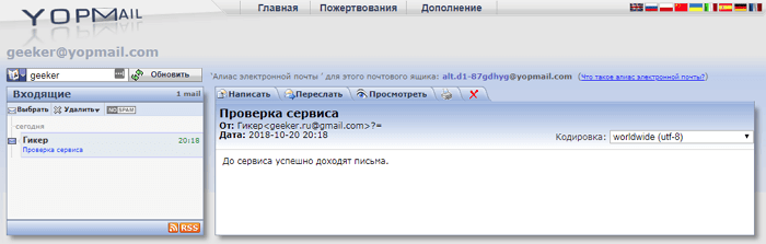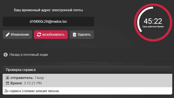 Одна з ключових особливостей MohMal – підтримка декількох мов: англійської, російської, німецької, арабської і т. д. адресу автоматично видаляється через 45 хвилин. Це робиться для підвищення рівня конфіденційності. Щоб запобігти видалення скриньки, потрібно періодично оновлювати його. Ви також можете створити аліас і вибрати бажане ім'я домену, натиснувши кнопку «Створити».