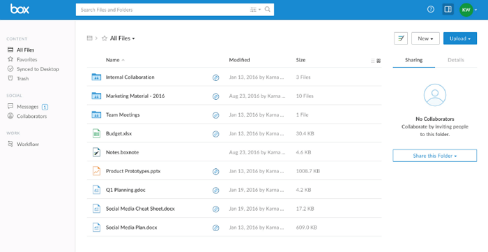 Box пропонує щедрі 10 ГБ безкоштовного сховища. Недоліком є обмеження на розмір 250 Мб для окремих файлів, що насправді не має великого значення, якщо ви не хочете зберігати великі відео. Ви можете розширити його до 100 ГБ пам'яті і обмеження в 5 ГБ для кожного файлу за 10 доларів США в місяць. Але в такому разі вигідніше використовувати Dropbox, Google Drive або OneDrive.