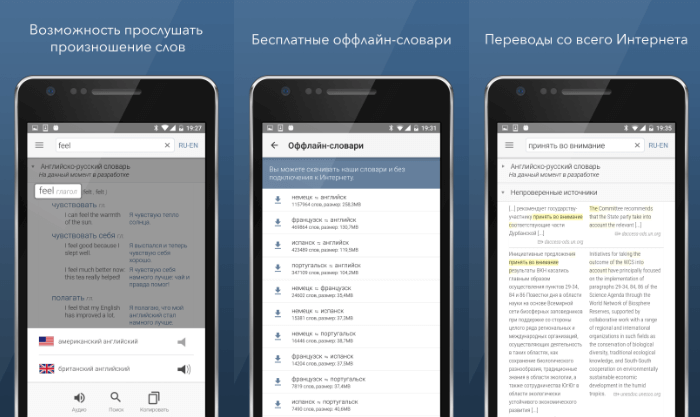 Яндекс Перекладач — це потужний мобільний додаток (скачати версію для iOS і Android), яка в режимі онлайн підтримує 95 мов. В автономному режимі додаток теж залишається корисним. Без підключення до інтернету Yandex.Translate робить переклади на англійську з наступних мов: французька, німецька, італійська, російська, іспанська та турецька.