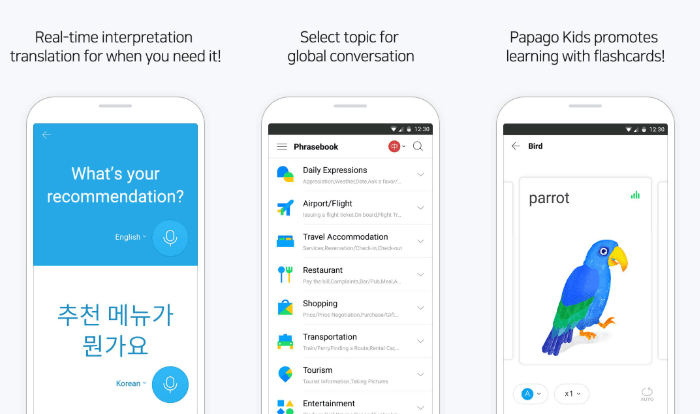 Додаток Naver Papago Translate призначене в першу чергу для мандрівників. В даний час підтримується тільки 13 мов (англійська, японська, корейська, іспанська, французька, тайська, в'єтнамський, індонезійський, російський, італійський, німецький, спрощена китайська, традиційний китайський). Підтримується обробка тексту та усного мовлення на 13 мовах. На есперанто «папаго» перекладається як папуга.
