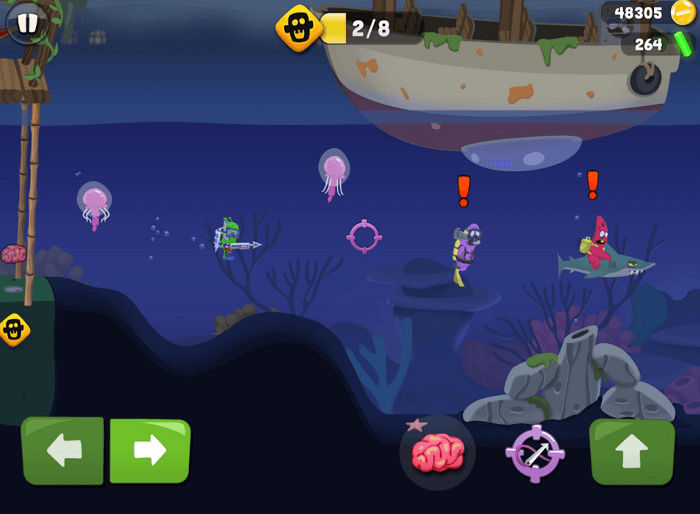 Не всі потвори легко попадаються на гарпун. Деякі хитрі і вміють ховатися. Їх треба ловити за допомогою приманок. Проявіть винахідливість.
