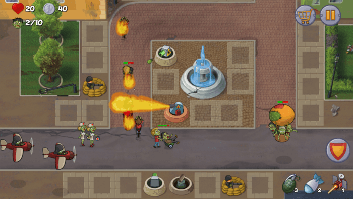 Є й додаткові бонуси: граната, лазер, заморожування. Граната розриває на шматки цілу групу ворогів. Заморожування зупиняє мертвяка. Лазер просто спалює нечисть. Причому набагато ефективніше вогнемета. Ключовий ресурс — паливо. Коли воно закінчується, доводиться чекати відновлення запасу. Хоча є шанс прискорити процес, переглянувши рекламний ролик.