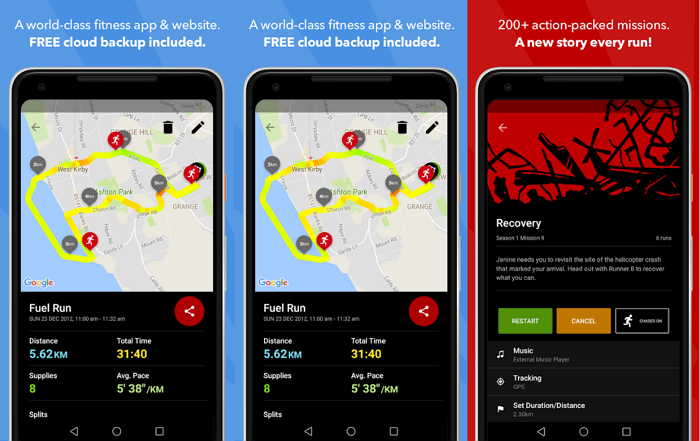 Додаток дуже сильно відрізняється від інших подібних проектів. Згідно зі сценарієм планета атакована зомбі, мета гравця — врятувати місто. Необхідно шукати для вижили продукти, ліки та інші речі. Але для виконання завдання потрібно бігти. Одночасно в навушниках грає музика, що змушує думати, що ворог дійсно десь поруч. Потрібні міцні ноги і зручні кросівки, щоб відірватися від переслідувачів.