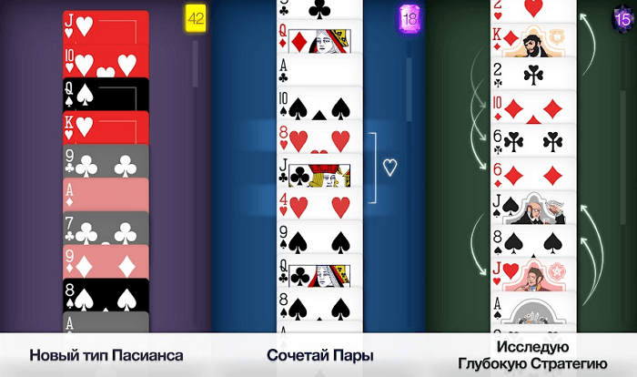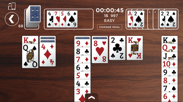 У «Клондайку» ви знімаєте карти зі столу через одну або три. Також можна вибрати класичний варіант, якщо хочете ускладнити завдання.