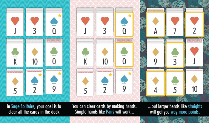 Є можливість скинути дві карти, хоча ви можете отримати більше очок, складаючи більш довгі руки. Якщо ви заплуталися, можете скористатися безкоштовними підказками. Коли доступні ходи закінчуються, процес зупиняється і підраховуються очки.
