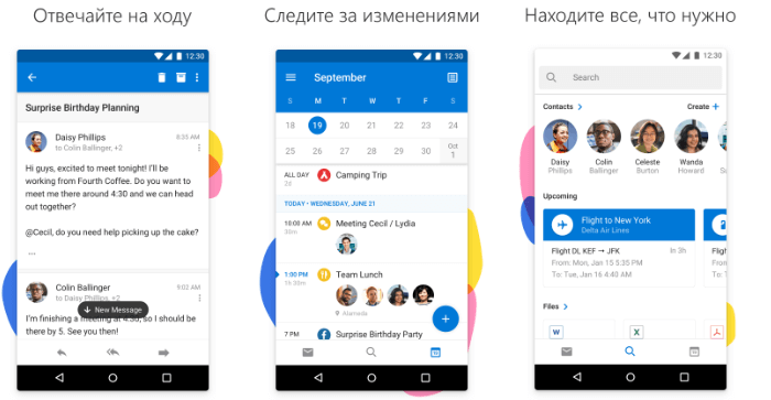 Microsoft Outlook зручний для відстеження відповідей на запрошення, організації заходів, взаємодії з іншими людьми. Користувач може подивитися, коли у того чи іншої людини є вільний час, щоб запросити його на зустріч. Outlook обов'язково слід спробувати, якщо потрібно синхронізувати календарі на сервері Exchange зі смартфоном. Це якісна альтернатива Google Calendar з деякими унікальними функціями.